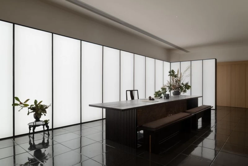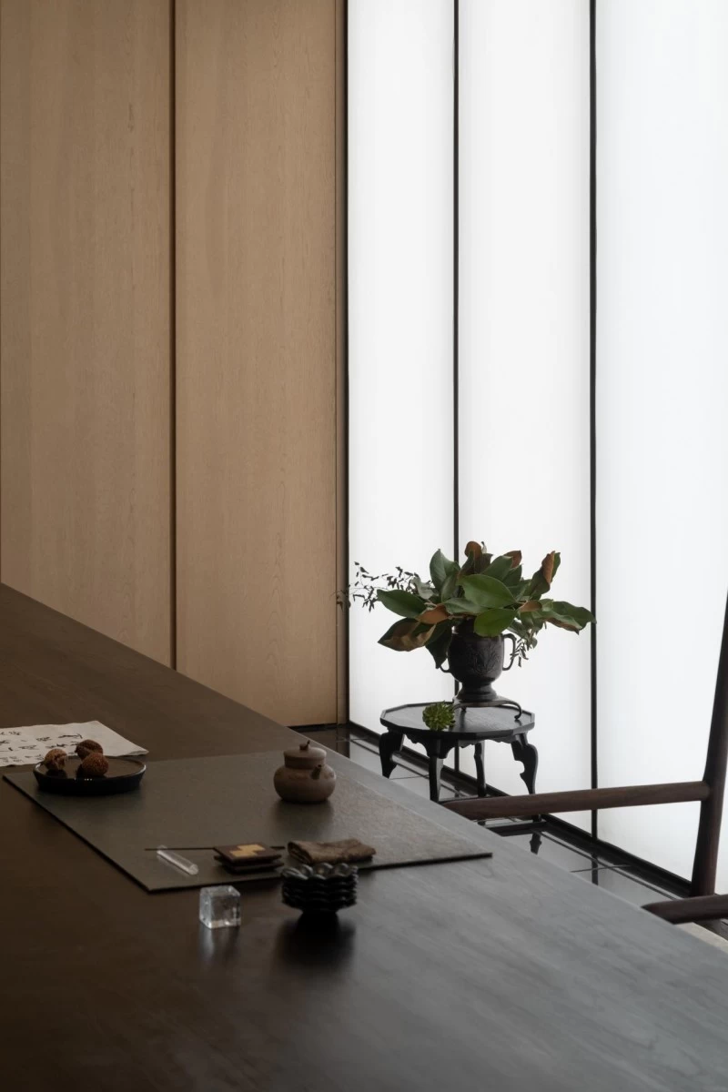 给茶室增添光影,便营造出更为沉浸式的茶意美学,光影之下,万籁俱静,一杯茶的时间,也是与内心对话的最佳时刻。