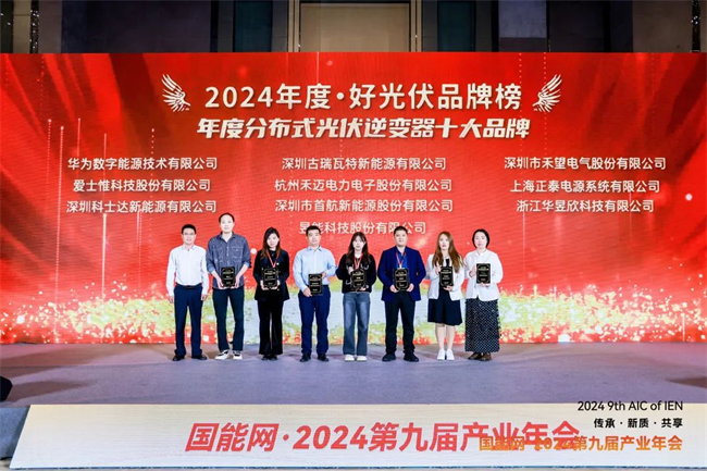 近日,由国能能源研究院、光伏头条、储能头条等单位主办的2024“第九届光伏产业大会暨2024好光伏品牌盛典”在北京隆重召开。昱能科技凭借其在分布式光伏逆变器领域的卓越技术创新、坚实产品实力以及深厚的市场认可度,成功荣获“2024年度分布式光伏逆变器十大品牌”奖项。