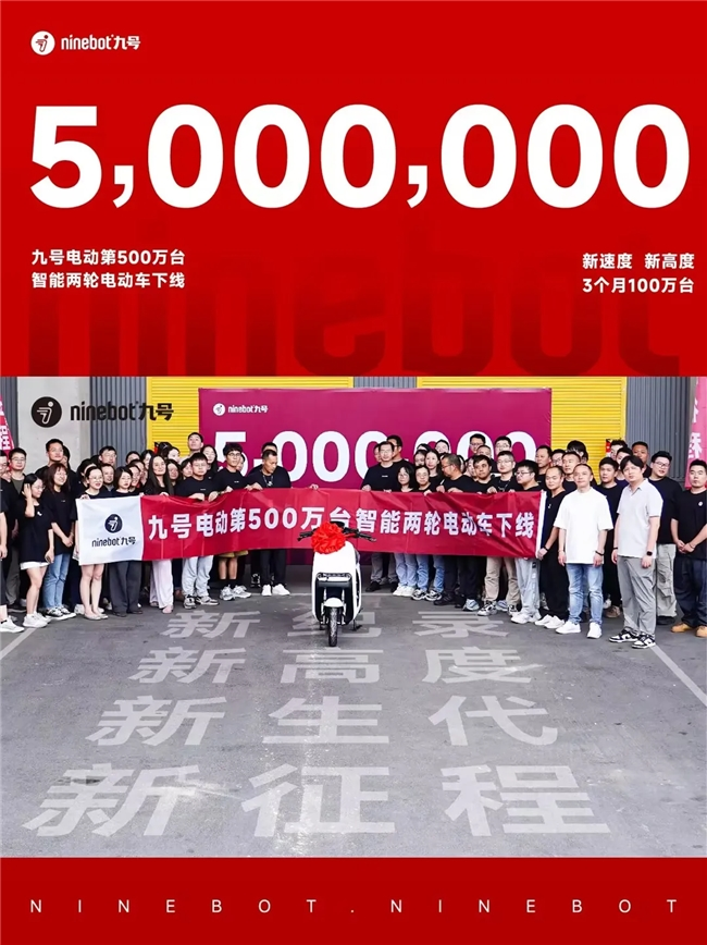 凭借不断创新的技术和稳定的产品品质,九号的电动车也因此在行业内受到高度认可,截止至今年上半年,九号智能两轮电动车中国区的销量已经突破119.84万台,同比增长123.18%,带动中国区销售收入33.35亿元,同比增长119.12%,九号智能两轮电动车的国内市场出货量更是累计达到500万台,足以证明其实力。值得一提的是,距第400万台下线,仅仅过去3个多月,九号电动再次创造了在此赛道的“加速度”。