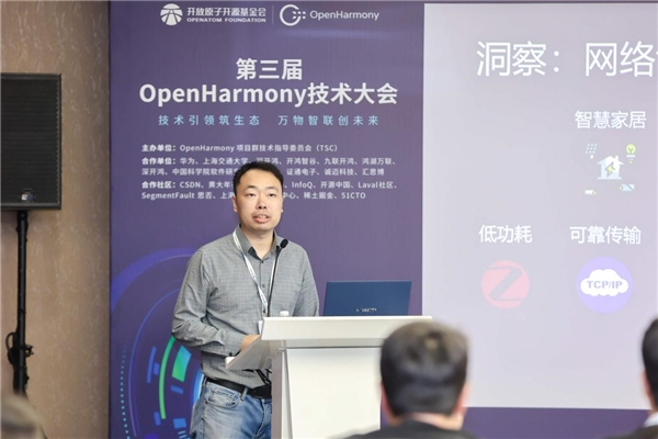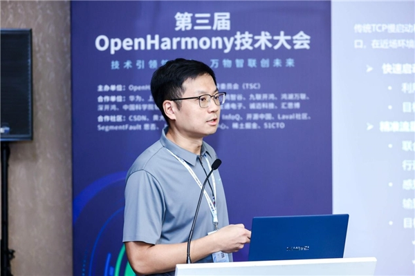 (华为2012实验室专家、OpenHarmony通信互联TSG主任和华为OpenHarmony网络协议首席架构师李杰发言)