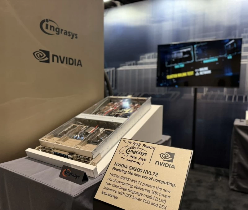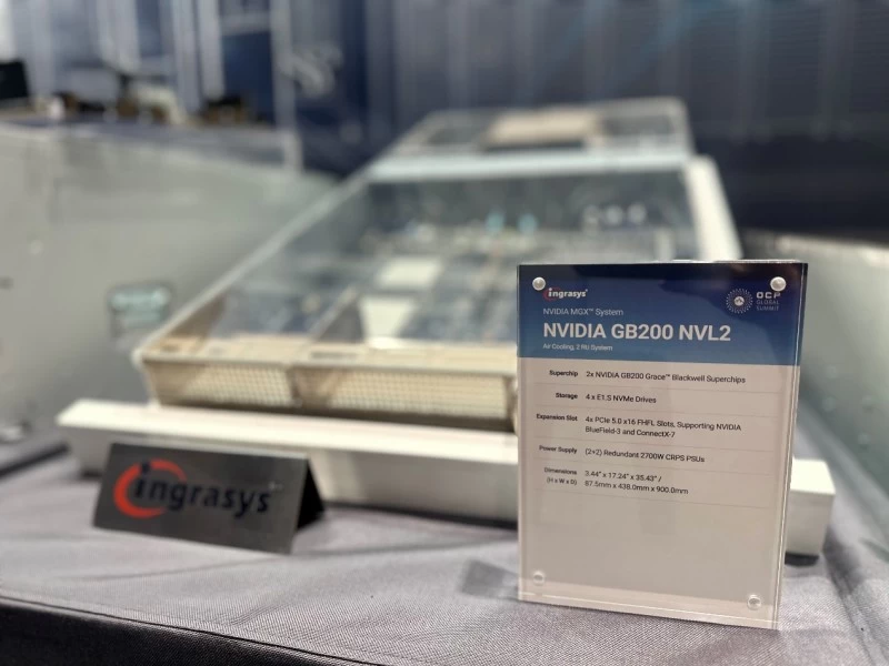 此外,在现场还可以看到鸿佰的最新超级运算中心模型,展望未来AI基础设施的发展趋势。该设施实际部署以GB200 NVL72丛集为主,规划总计超过1000个GPU,旨在应对未来最严苛的AI工作负载。这个中心专注于AI效能调校及优化,充分彰显鸿佰在推动AI尖端创新方面的坚定承诺。