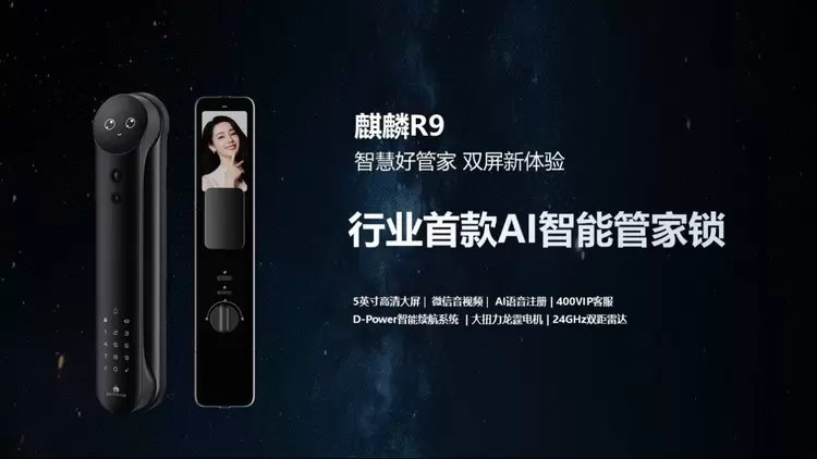 麒麟系列为旗舰系列,行业首款AI智能管家锁麒麟R9,结合人工智能技术,融合年轻化动态emoji表情,赋予产品生命力,在提升智能锁的便捷性的同时给予消费者情感价值。