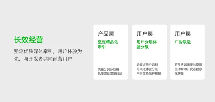 在长效经营方面,OPPO从产品层、用户层、经营层三层级出发,坚定以优质媒体牵引保障用户体验,与开发者共同经营用户,建立健康生态,实现多层级可持续增长内驱力。