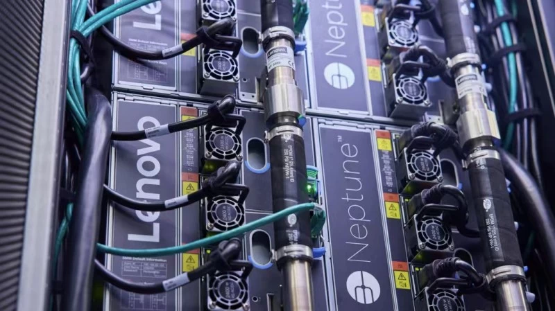 (联想海神液冷服务器局部细节)