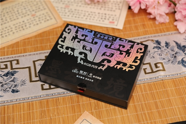 作为主打颜值的内存产品,墨云藏境系列从包装上就让人感受到与众不同。正面不仅印有巨大的饕餮图腾,还把内存形状和产品名都融入在内,设计非常巧妙。下方一行“墨云藏境,意韵长安”的文字更是直接让意境得到了升华。