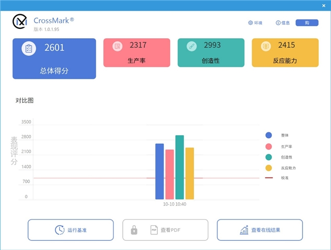 办公方面使用PCMARK10和CrossMark进行测试,前者总成绩为7485分,后者则有2601分入账。内存频率不仅只能提升游戏表现,作为电脑中的数据交换中枢,影响范围可以涵盖各个方面。