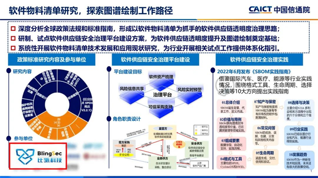 作为工作组的关键成员,比瓴科技曾深度参与中国信息通信研究院的SBOM研究工作。