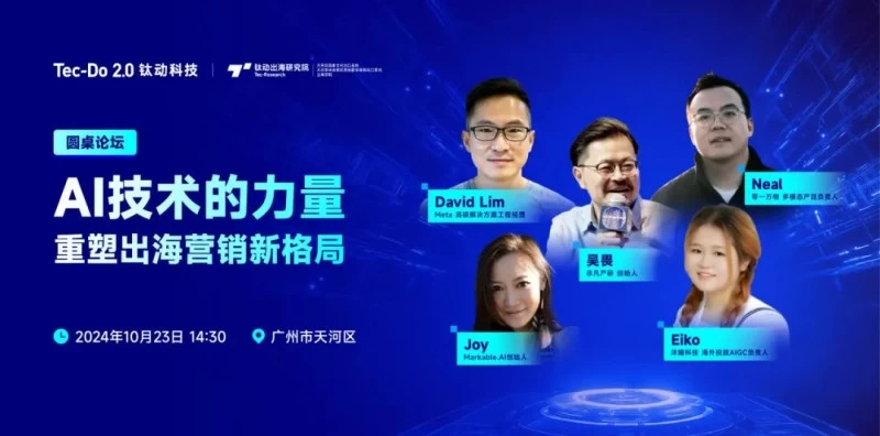 此次大会特别设置圆桌论坛环节,以“AI技术的力量:重塑出海营销新格局”为主题,围绕AI技术与出海营销的融合应用展开,探讨其在个性化内容生成、用户行为分析、数据驱动的智能营销等方面的实际应用与前景。届时,来自Meta、零一万物、沐瞳科技、Markable.ai和非凡产研的五位重磅嘉宾将分享最新行业洞见,交流在全球市场中如何通过AI技术实现业务升级、精准触达和全球用户增长。