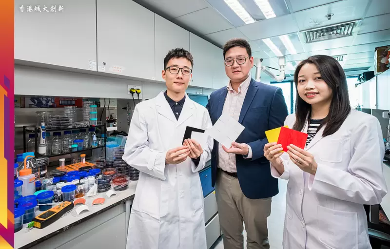 曹之胤教授(中)带领的团队进一步研发出崭新的被动辐射制冷瓷砖,成果于去年底刊载于著名学术期刊《科学》。(图片来源:香港城市大学)