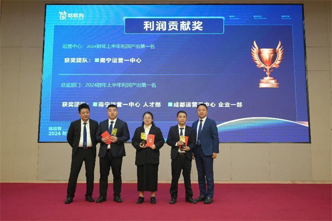 咕咕狗2024财年年中高管会上另一重要的环节是“表彰先进”。会上,共颁发了职能类、销售类、内部活动类等三大类共12个奖项,逾20个团队获奖。