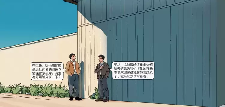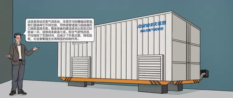 粮库作为著名的绿色仓储保管示范库,还得益于上线了航天信息提供的移动充氮气调装备和超静音风机。