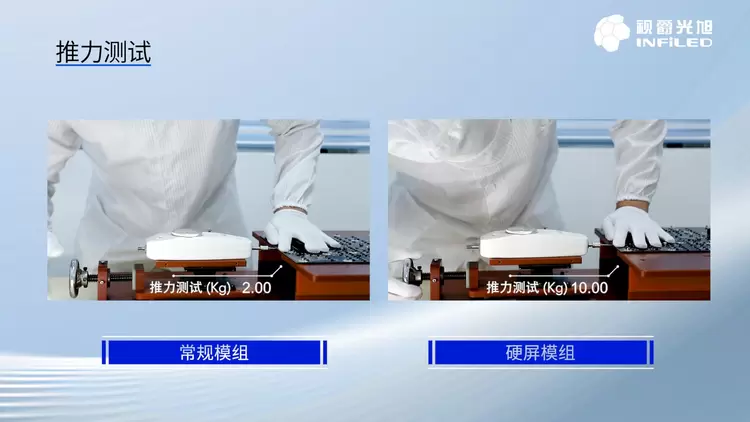 常规模组能够承受的最大推力为2kg;硬屏模组可承受推力高达10kg。