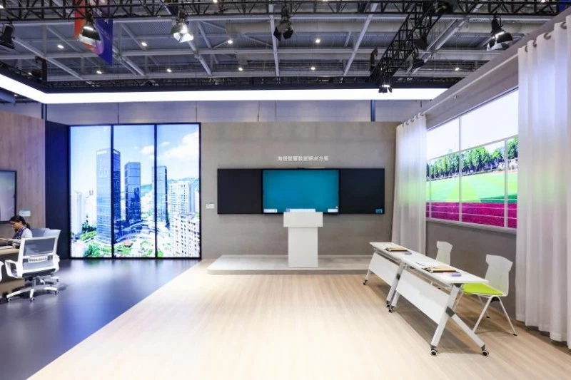展会现场,多样化的场景体验吸引了众多“科技迷”前来打卡。在海信展区,海信商用显示现场搭建海信智慧会议室解决方案、智慧教室解决方案等,为人们描绘出智慧办公及智慧教育的便捷体验。
