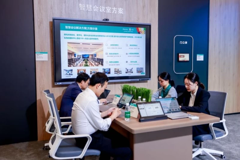 在智慧会议室中,借助海信Vision Hub会议平板,该方案可贯穿会前、会中、会后全流程,打造政企开会场景下的智慧高效体验。会前,依托于海信智慧会议室系统与企业OA打通,组会人可通过手机、门口屏、PC设备等进行会议预约;会中,参会人可通过个人桌面屏浏览会议内容,同时进行会议批注并实时同步,多端协作,提升开会效率;会后,通过AI语音识别,3分钟即可生成会议纪要,让知识资源可视化沉淀,同时自动释放会议空间,省时省心。