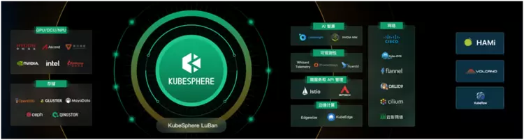 自 2018 年起,青云就开启了云原生底座的自主研发之路,以开源项目 KubeSphere 为基石,成功构建并运营了具有全球影响力的云原生开源社区。云原生不仅为 AI 智算平台提供技术底座,还充分运用 LuBan 应用框架、Whizard 可观测性平台等能力,极大地简化了与第三方生态合作的对接和验证过程,同时有力地保障了整个平台的性能监测与故障诊断。