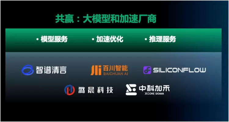 在模型服务层面,青云与大模型厂商合作,在 MaaS (模型即服务)平台上架了多款大模型服务。在金融等行业,青云与智谱深入探讨了如何让行业客户从了解常见的 AI 应用,到将 AI 真正落地到行业场景中,这是一条漫长的路,需要从企业内部数据的重新整理到流程的重构,深度合作才能全面发挥模型的能力和价值。青云与模型加速企业合作,希望让用户通过青云智算平台更快、更流畅地使用模型服务。如与潞晨科技合作完成了山东的一个大型政府项目的落地,由于前期双方已有合作,使我们成为最快通过验收的企业。此外,青云也与中科加禾就异卡环境下如何更好地实现模型一致性交付等方面展开合作。