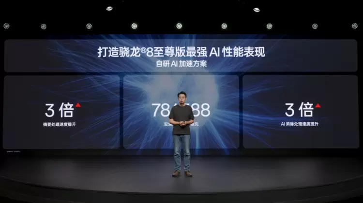 在 AI 性能表现上,一加 13 将自研的 AI 加速方案与骁龙 8 至尊版强大的 NPU 融合,在 AI 通话摘要与 AI 消除两大核心 AI 功能上,处理速度提升了 3 倍,实现超迅敏的 AI 体验。在安兔兔 AI 跑分中,一加 13 以超 78 万分的成绩领跑旗舰手机。