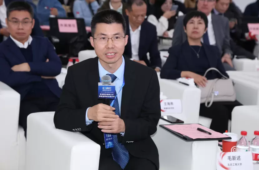 新道科技股份有限公司副总裁贾大明聚焦“培养商科领军人才 服务中国式现代化”进行分享。他提到,数智化全面引领新质生产力,加速进化产业变革,重新定义企业创新,重新定义人才需求,重新定义教学范式。贾大明表示,以未来技术+全球管理构建的商科教育发展格局正在形成,数智时代的商科教育发展要以产教城融合为战略高度,梳理校企资源;以区域产业为服务对象,设计四链结构;以新质专业为破局引领,重构专业布局;以数字经济为逻辑起点,重构课程体系;以数智场景为课改抓手,重构课程内涵;以数智实践为核心重点,提升教学能力;以产业需求为攻坚焦点,布局科研能力;以区域赋能为服务导向,延伸服务能力;以人工智能为逻辑起点,构建数智教育;以数智产业为培养场域,重塑实体空间。