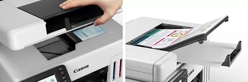佳能恭喜系列GX6580则以高颜值、紧凑机身的设计赢得了市场的青睐。无论是酒店、餐饮企业,还是公司前台、医院诊所、银行柜台、租车公司等,只要有便捷打印的需求,GX6580都能轻松应对。其前部正面ADF输稿器的设计非常适合小空间使用。在扫描文件时,只需正面放置原稿即可同时扫描双面,免去复杂的翻面工作。若需扫描、复印身份证件,只需将证件放置在稿台的右下方,不需要完全打开盖板,滑动证件即可取走。轻松之间,完成证件的清晰复印和扫描,获得了用户的好评。佳能恭喜系列GX5580则多用于共享打印场景,通过大容量双纸盒、高速打印和连续内部处理的功能,GX5580有效解决了共享打印场所长时间等待和排队的问题,大大提升了工作效率。此外,低成本、轻运维的特点使得GX5580在部署和开发方面也更加便捷。
