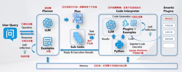 Smartbi AIChat白泽在技术路线三RAG增强检索能力的基础上,采用先进的AI Agent技术,结合Python等工具,显著提升了数据分析的准确性和灵活性。AI Agent通过规划器理解问题,将复杂任务拆解为小任务并逐一完成,生成的Python代码确保了任务的精准与高效。Python作为强大的编程语言,具备处理复杂数据分析任务的优势,特别是在诊断、预测和指示性分析、机器学习和可视化方面。AI Agent与Python的结合,增强了白泽的任务执行效率和扩展能力。