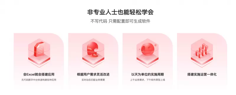 同时由于不需要具备编程知识,这大幅度降低了业务人员与技术团队之间的沟通难度,提高了沟通效率和开发速度。用户可以在上午提出需求,下午就实现上线,快速响应市场变化,同时简化了系统的后期维护。