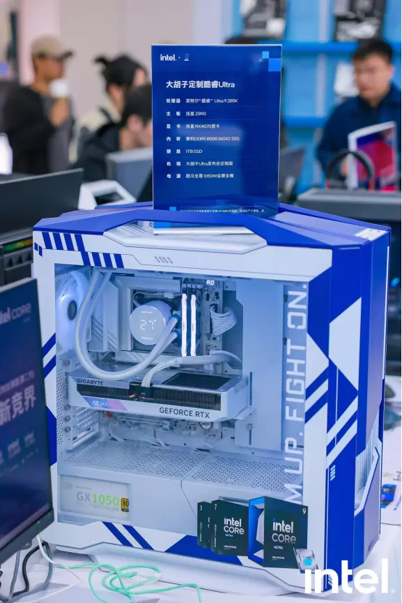 大胡子发布会定制版主机,通过UV打印涂装,低成本、最快速地实现机箱外观的定制化。在游戏性能方面可以在大幅降低功耗的情况下,提供旗舰级的游戏帧率,更低的功耗和温度意味着更低的散热器噪声。