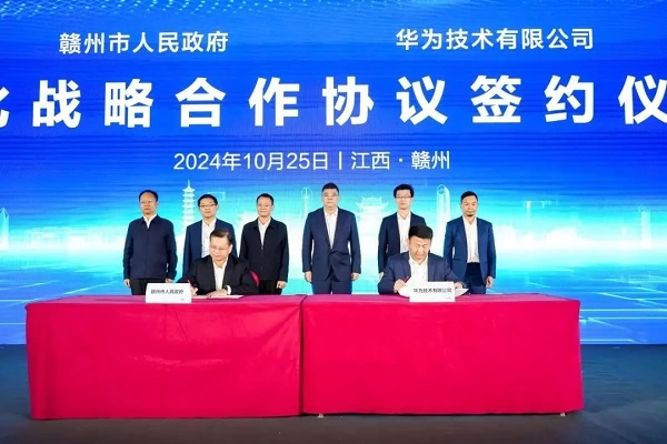 赣州市人民政府与华为技术有限公司签署深化战略合作协议,双方将从深化智慧城市建设、推动数据产业发展、促进制造业数字化转型、培育数字化人才4个方面开展合作,助力赣州打造高质量发展的现代化体系和数字赣州新样板。