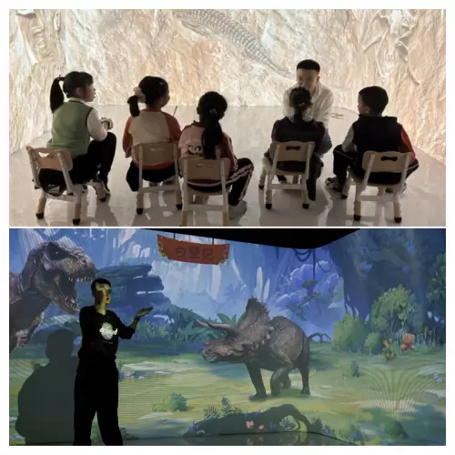 成长秘密科技阅读馆采用线上线下相结合的教学模式,利用3面环屏,结合投影技术,打造沉浸式阅读体验,激发孩子们的阅读兴趣。同时,教学过程中注重老师与孩子、孩子与同伴之间的互动,利用多种有效的教学方式,提升孩子的注意力、思考能力和表达能力。