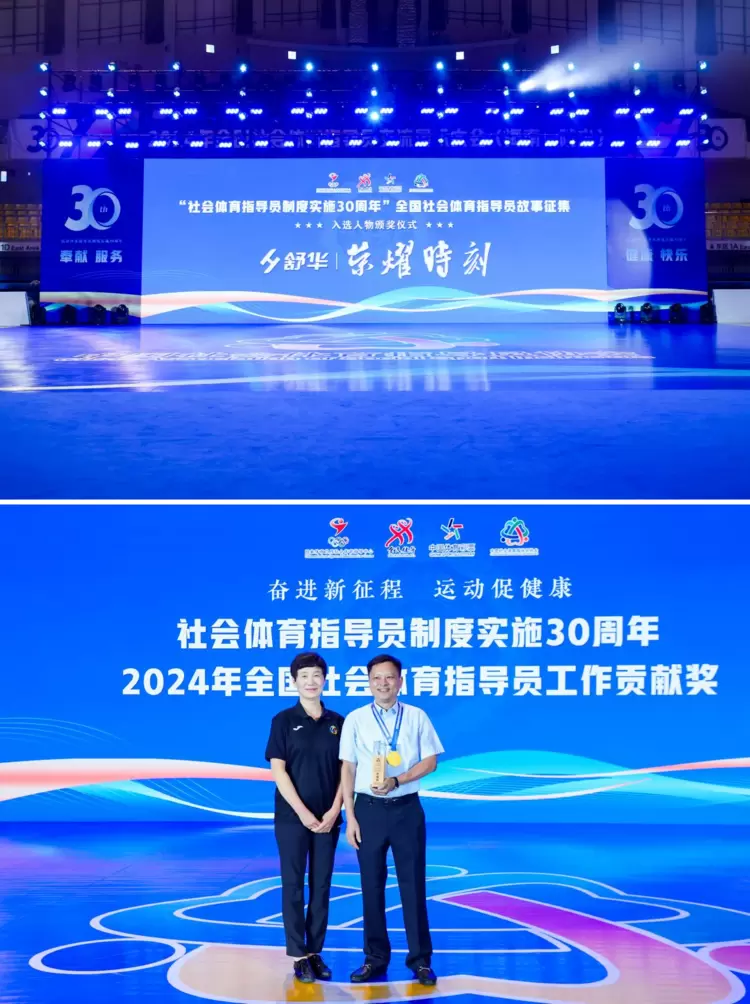 10月27日,社会体育指导员制度实施30周年系列活动2024年全国社会体育指导员交流展示大会在海南陵水精彩收官。本次交流展示大会在闭幕式上表彰先进,共促发展,中国社会体育指导员协会会长、国家体育总局群众体育司原副司长邱汝为舒华体育颁发了“社会体育指导员工作贡献奖”。