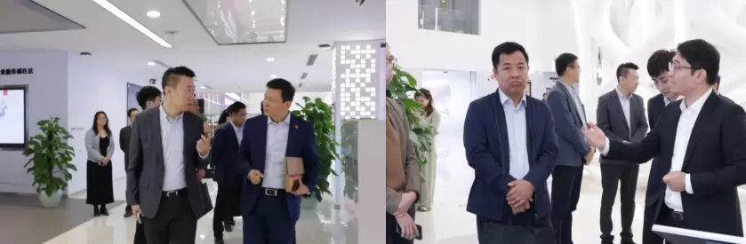 会议期间,左罡总经理一行参观了用友数智企业体验馆,深入了解了数智企业在营销、采购、生产、财务、人力、协同等方面的核心业务场景和运营模式,以及用友在教育、制造、零售、金融、建筑、能源、政务及小微企业等行业数智化解决方案。