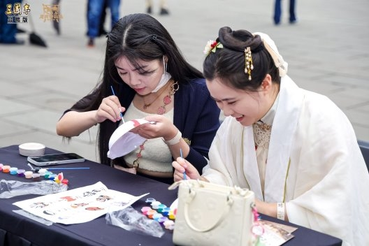 历史的骨架下,流淌的是生生不息的文化血脉。千百年间,三国文化与蜀地文化相互影响和融合,形成了极具魅力的地域文化景观。在游园会活动现场的蜀地文化体验区,参与者既能亲手绘制川剧脸谱,画出自己心中的诸葛先生,寄托对丞相的缅怀,也可以欣赏非遗皮影戏“三英战吕布”,回味三国英雄谱写的浪漫史诗;又或者是喝上一杯定制蜀地《盟友茶》,拿上一支三国人物糖画,听说书人娓娓道来一段三国往事……