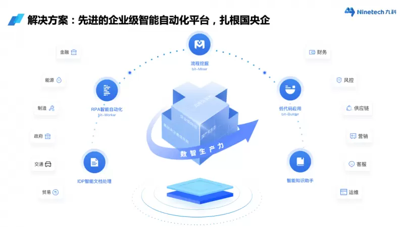 九科信息自研的“bit-Worker”云原生自动化平台,已助力多家大型国央企建立RPA平台,并打造自动化技术服务运营体系,拥有大量标杆实践案例及财务场景的丰富经验。