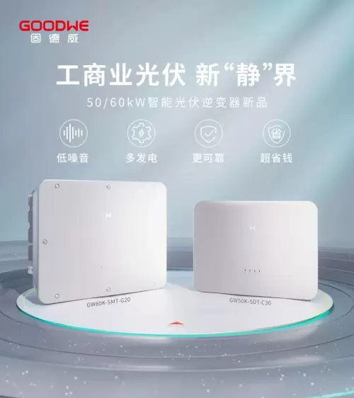 固德威在清洁技术领域不断创新,致力于推动绿色能源的广泛应用。公司以"零碳生态先锋"之姿,通过自我革新和绿色发展,引领行业向更环保、更高效的方向前进。固德威提供全场景能源解决方案,涵盖光伏逆变器、储能逆变器、储能一体柜、智慧能源平台、光电建材和热泵等产品,全面满足家庭户用、工商业及大型地面电站的多样化需求。近日,固德威推出了全新50、60kW超低噪音逆变器,产品功率密度得到极大提高,超低噪音设计,最高转换效率可达 98.8%, 重量较上一代减轻 20% 以上,显著减少制造、运输、安装运维过程中的材料消耗和碳排放,从而有效降低了碳足迹。