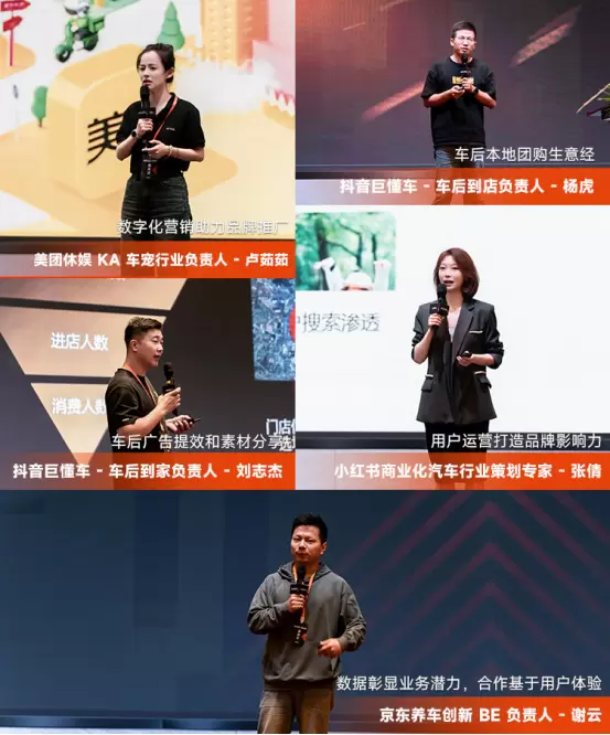 美团休娱KA车宠行业负责人卢茹茹介绍美团通过大数据和平台资源为膜小二打造精准营销方案,提高品牌曝光和销售转化率,并不断优化服务体验。抖音巨懂车的杨虎和刘志杰强调抖音的流量优势为膜小二带来品牌曝光和销售业绩,还将继续提供支持。小红书商业化汽车行业策划专家张倩阐述小红书通过精准用户画像和内容推荐为膜小二吸引潜在消费者,建议加强用户运营。京东养车创新BE负责人谢云指出汽车用品数据显示车膜业务潜力大,京东与膜小二基于用户体验达成合作,实现互利共赢。