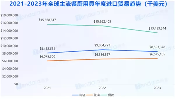 2021年至2023年间,全球主流餐厨用具的进口贸易呈现了一定的下滑趋势。