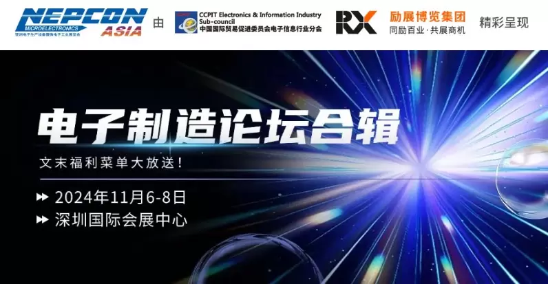 NEPCON ASIA 2024亚洲电子展围绕电子制造领域尖端设备与技术革新、智能智造、高可靠性电装工艺及行业最新发展趋势等热门议题开展电子制造论坛,提升电子制造企业生产效率与竞争力,引领行业向“三高四化”迈进。