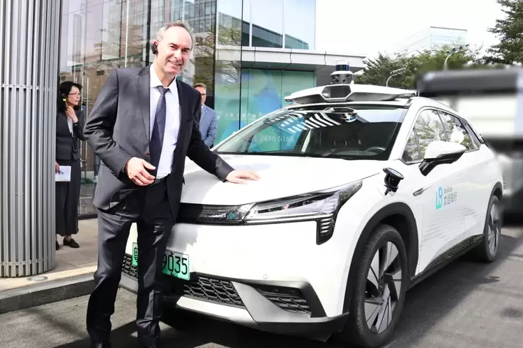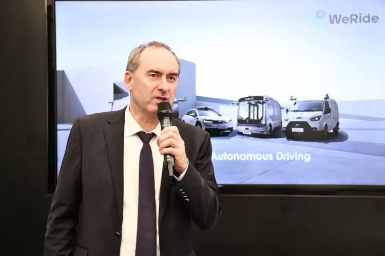 (德国巴伐利亚州副州长胡伯特·艾万格先生参观文远知行自动驾驶出租车)