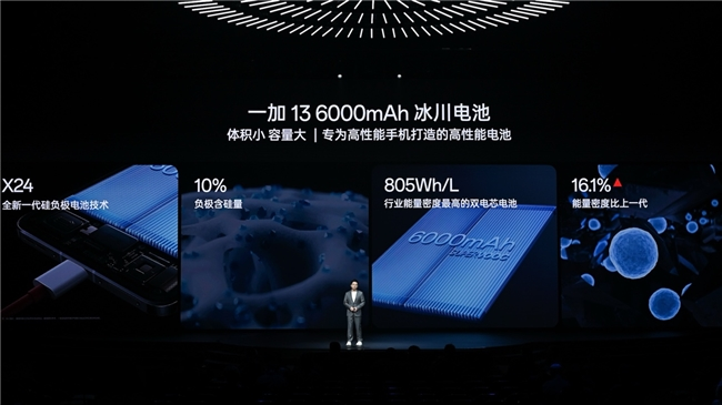 2024 年,一加以「冰川电池」开启了手机的长续航时代。一加 13 续航体验再进化,带来 6000mAh 超大容量「冰川电池」,DOU 续航达到 1.96 天,即使 1% 应急电量也可支持最长 13 小时超长待机。一加 13 冰川电池基于新一代球型硅碳以及蜂巢仿生结构打造,能量密度达到行业领先的 805Wh/L,这让一加 13 在拥有大电池容量的同时还能保证轻薄手感,同时得益于行业领先的电池工艺技术以及硅碳负极电池健康算法,一加 13 还实现了电池的久用耐用,使用寿命更长。