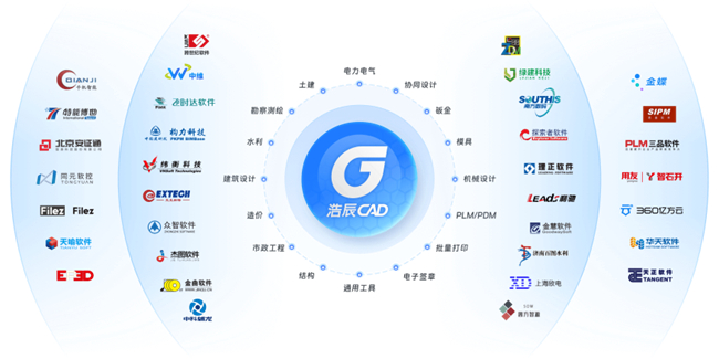 在生态构建及行业整体解决方案打造上,浩辰软件积极携手生态伙伴,为机械制造、工程建筑、施工、勘察设计、装饰装修、电力电气、水利燃气等细分领域的企业用户搭建数字化设计平台,合力完成更适合细分领域的行业应用解决方案。目前浩辰软件已与国内外300+生态伙伴、全球开发者达成紧密合作,针对工程建设、制造行业等细分领域,成功推出了数百款基于浩辰CAD平台的垂直行业应用软件。