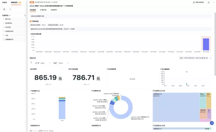 除了账单管理和分析,观测云还提供了实时监控和异常预警功能。这个功能会实时追踪各项服务的消费数据,一旦出现异常费用,系统就会及时发出预警,帮助企业迅速做出响应,避免意外的费用超支。对于需要精准预算规划的企业来说,这无疑是个非常贴心的功能。