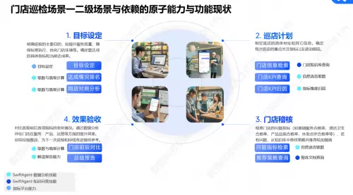 数势科技基于智能分析助手(SwiftAgent)为该零售连锁品牌成功部署了智能督导助手,该产品与指标平台无缝集成,全面考虑了一线督导的实际使用习惯,旨在大幅度提升工作效率和督导效果。其核心功能包括: