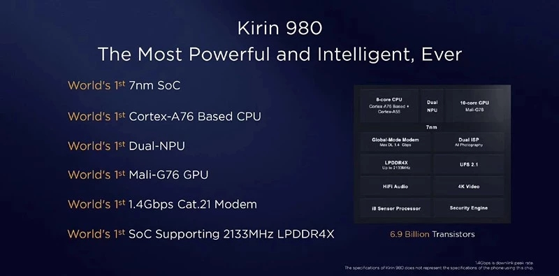 创下7nm等六项世界第一!麒麟980正式发布 性能强悍支持5G