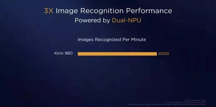异构计算架构和专用的神经网络单元是端侧AI的代表,继在麒麟970上首次集成NPU,华为此次在麒麟980上首次应用了双NPU。在双NPU的移动端强大算力加持下,这款芯片能做到人脸识别、物体识别、物体检测、图像分割、智能翻译等AI场景,采用更高精度的深度网络、具备更佳的实时性,从而获得更优体验。麒麟980实现每分钟图像识别4500张,识别速度相比上一代提升120%,远高于业界同期水平。