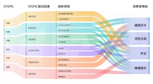 结合未来的驱动力因素分析,2026年消费者情绪将主要分为道德受损、理性乐观、怀念、情绪微光四大类。这些情绪反映了消费者对未来生活的期望和担忧,为设计师提供了洞察消费者需求的窗口。