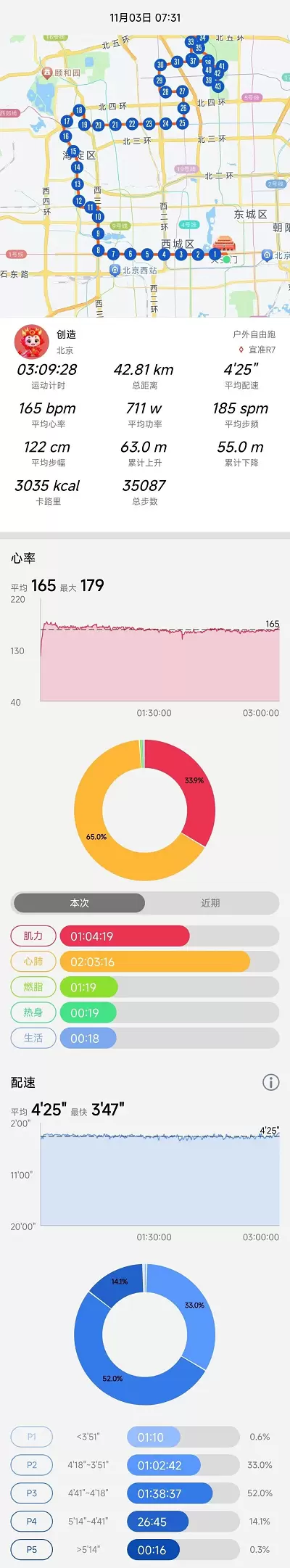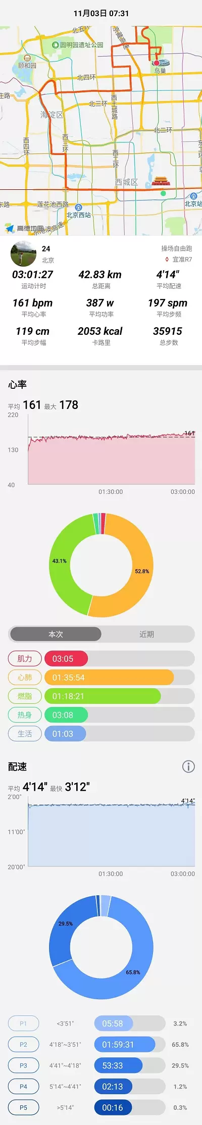 平均步频189和平均步幅118cm,也符合我马拉松训练的正常状态。