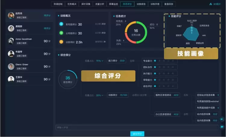 ●业务场景一:支持用户对外包安服人员进行能力基线测评与培养。
