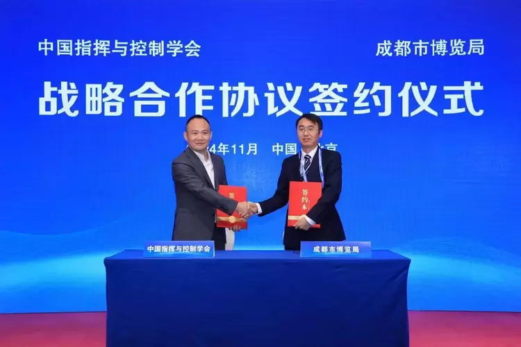 成都市博览局副局长孙文慧和中国指挥与控制学会低空产业工作委员会总干事王浩签署战略合作协议