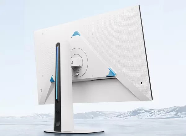 在外型方面,大圣G5 Pro打造冰川白电竞外观,波浪纹理与电镀蓝色勾勒出的山峰造型相得益彰,使其在众多黑色电竞显示器中独树一帜,也将冰川象征的冷静与沉着传递给用户。更省空间的六边形小巧底座搭配人体工学支架,可以进行升降,俯仰,旋转等多角度调节,提升了使用的便捷性。