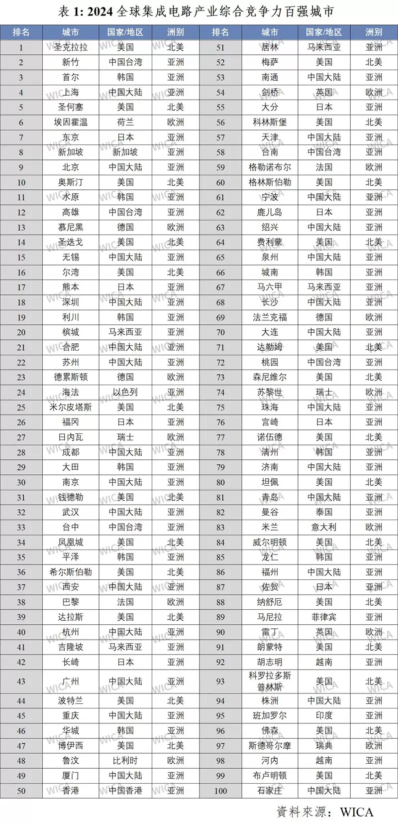 - 世界集成电路协会(WICA)发布2024年全球集成电路产业综合竞争力百强城市白皮书