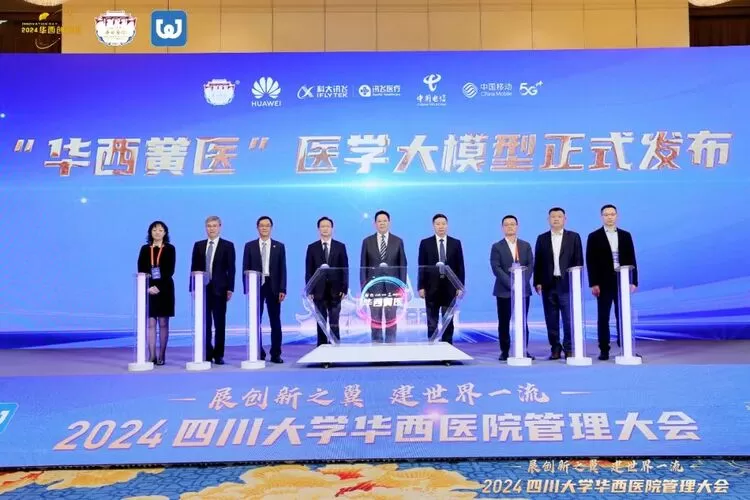 11⽉2日 ,四川大学华西医院管理大会在成都召开,四川省人民政府副省长杨兴平,四川大学华西医院院长罗凤鸣,讯飞医疗执行总裁鹿晓亮,华为公司副总裁、数据存储产品线总裁周跃峰等出席会议。开幕式上,四川大学华西医院、讯飞医疗、华为等共同发布“华西黉医”医学大模型。
